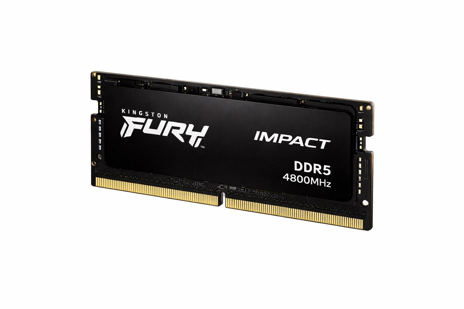 Conteúdo da embalagem inclui 1 módulo de memória RAM Kingston Fury Impact de 16GB com frequência de 4800MHz.